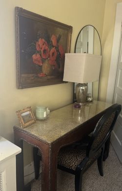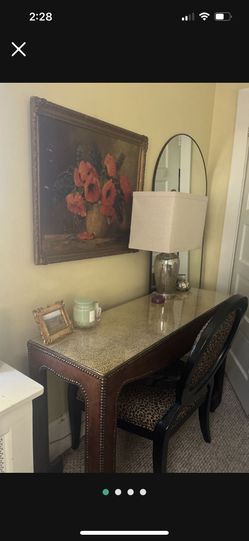 Fabric and suede glass top console table$1,050Stony Brook, NY