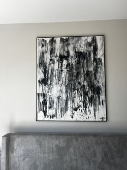 Large Scale Abstract Black & White Acrylic Painting – Framed 42.5” X 52”$400Houston, TX