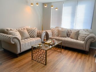 Golden Glimmer 100% Hand Brush Embellished Canvas, 2 Piece Set, Each 22" W x 28" H x 1.5" D, Gold, Living Room $100White Plains, NY