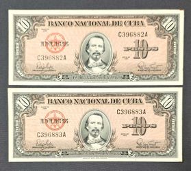 10 Pesos 1960-UNC-banco Nacional De Cuba-serie Consecutiva$45Clermont, FL