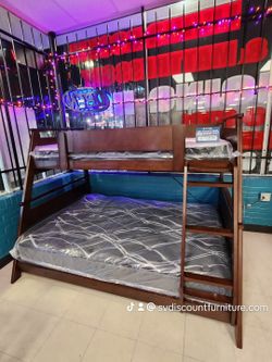 Twin/full bunk bed frame brown with mattress$950Houston, TX