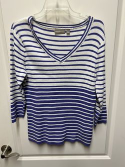 Ladies Large, White/Purple Striped Sweater, 3/4 Length Sleeves$5Gilbert, AZ