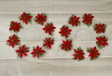 Vintage Christmas White Plastic Red Poinsettia Placemat Doily 12” Set of 2 -1960$15Boca Raton, FL