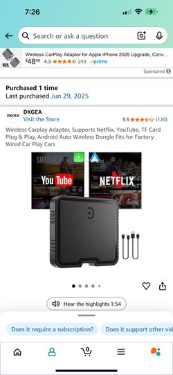 Wireless Carplay Adapter, Supports Netflix, YouTube, TF Card Plug & Play, Android Auto Wireless Dongle Fits for Factory Wired Car Play Cars$40Bellevue, WA