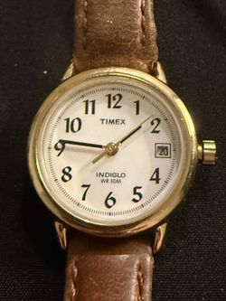 Timex Indiglo Womens Watch 25mm Gold Tone Brown Leather Date$15Tempe, AZ