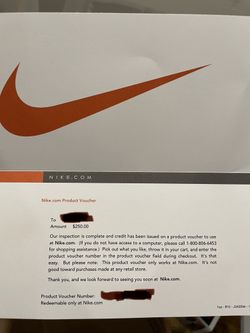 Nike Voucher $250 value$225Marina, CA