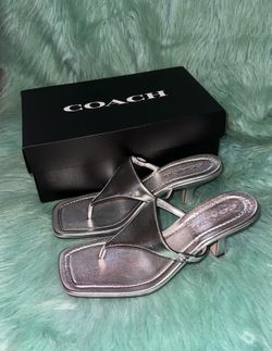 NIB COACH Heritage C Plaque Thong Sandal Women’s size 7.5 Metallic Silver. MSRP $175.$80North Las Vegas, NV