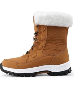 tan winter snow boots with white faux-fur cuffs and thick, non-slip black soles $120Arlington, VA