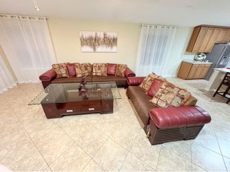Solid Wood & Genuine Leather Custom Made 11” Cushions Sofas -+ Coffee Table$1,250St. Augustine, FL