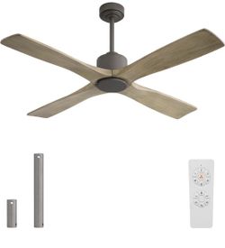 48" Ceiling Fan without Lights -Modern Ceiling Fan no Light, 6-Speed Remote, 4 Solid Wood Blades, Quiet DC Motor, for Bedroom, Living Room, Outdoor, G$170Turlock, CA