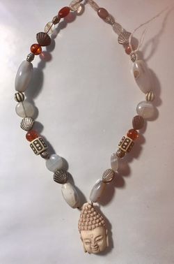 A Beautiful Necklace With Elegantly. Marfil Bone Carved Buddha And Agate and Ambar Resin And Stone.$55Edgemoor, DE