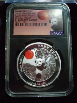2019Z China 1oz Silver Panda Blood Moon First Day Of Issue - PF 70 Ultra Cameo $250Aurora, IL