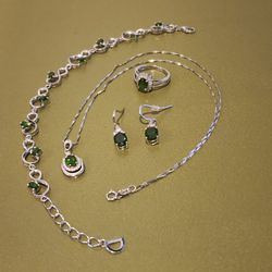 Green Chrome Diopside Jewelry Set Necklace Earrings Bracelet Ring$300Los Angeles, CA