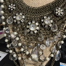 Vintage RJ Graziano Mesh & Chunky Clear Rhinestones Collar Necklace$29Miami, FL