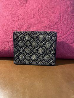Small Vintage Clutch Black Velvet Gold Thread Embroidered So Pretty Black Satin Interior $10Bothell, WA