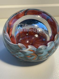 Artist Signed Art Blown Glass Paperweight- Russell Investments Logo Etched $14Bothell, WA