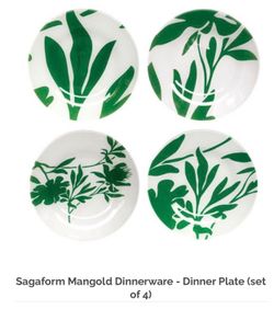 NEW 4 Sagaform Mangold Green Tropical Flower Leaves White Glass Dinner Plates$18Bothell, WA