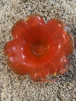 Heavy Beautiful Vintage Murano Cased Layered Handblown Glass Bowl Flower Clover Art Glass Red Orange White Bowl Dish Tray$28Bothell, WA