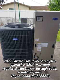 2022 Carrier 4 Ton 18 Seer Complete System With Heat For $1500$1,500Fort Lauderdale, FL