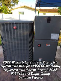 2022 Rheem 5 Ton 19.5 Seer Warranty Registered With Rheem Through 2032$1,950Pembroke Pines, FL