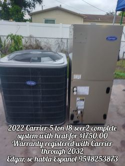 2022 Carrier 5 Ton 19.5 Seer Complete System With Heat For $1950$1,950Pembroke Pines, FL