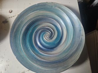 Grey Blue Glass Luster Oval Serving Bowl Floral Decorative Luster 13" Italy New$30Batavia, IL