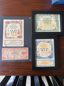 Framed Vintage Japanese Military Currency/bonds And A Philippine Bill All Vintage $65Lodi, CA