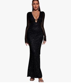 Women Sexy V Neck Sequin Long Sleeve Bodycon Maxi Dress Sparkly Ruched Gown Evening Formal Dresses$30Pleasant Hill, IA
