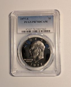 1977 - S Eisenhower Dollar PR 70 DCAM PCGS Blue Label $585Thomson, GA