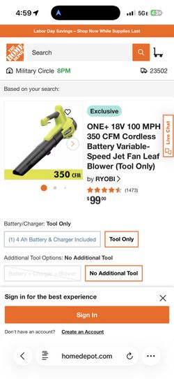 Ryobi Blower 18v$50Norfolk, VA