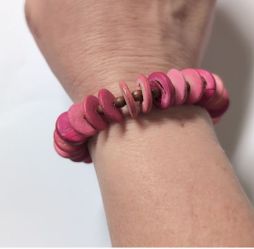 Pink Wooden Disc and Brown Beaded Stretch Bracelet $5Overland, MO