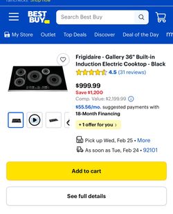 Frigidaire 36in 5 Burner Black Induction Cooktop $825La Costa, CA
