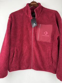 Converse Sherpa Fleece Jacket Womens L Full Zip Burgundy Red Soft Warm NWT$65Oregon City, OR