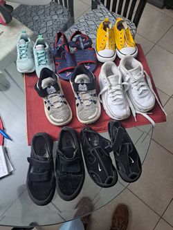 7 Pairs Shoes Sizes Vans 11.5 Two Pairs Nike 10c Converse 9 Adidas 5k 2 Pairs Sandals Nike Size9 , Nautica Size 9$80Tamarac, FL
