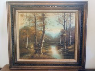 Vintage Landscape Painting Bob Ross Style Wall Art Retro Carved Frame Oil On Canvas 33x29” Eames MCM 1970s$80Lakewood, CA