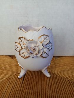 Vintage Napco Cracked Egg Footed Cream Vase w/3 D Rose, 1962$25Mount Vernon, WA