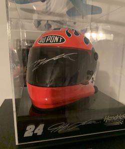 Jeff Gordon & Jimmie Johnson signed diecast helmets with display case.$175Miami, FL