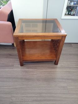 side table, solid wood with lattice detail, glass top$20Seattle, WA