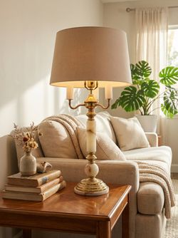 Vintage Mexican Onyx Brass Candelabra Table Lamp | 3 Arm Hollywood Regency | Mid Century Lighting | Made in Mexico | Antique Lamp $1Indio, CA