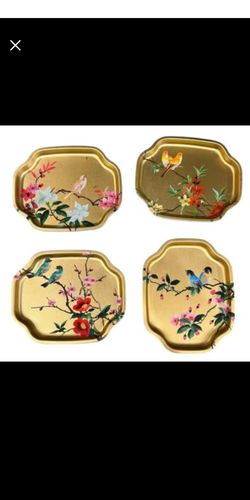 Vintage Set 4 Elite Gold Colored Trays Bird Floral Design England Mint$15Goodyear, AZ