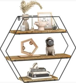 Metal Wall Hanging Hexagon Shelf w 3 Wood Shelves, Rustic Floating NEW$20Goodyear, AZ