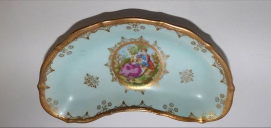 Antique Arnart Japan Bone Dish Courting Couple, Blue Gold, Excellent$15Goodyear, AZ