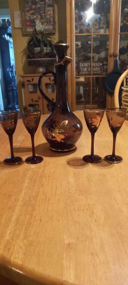 BLACK AND GOLD WINE DECANTER WITH 4 GLASSES!$50Fall River, MA