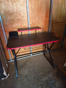 Amazon Basics Rectangular Gaming Computer Desk With Storage For Controller, Headphone & Speaker, Red & Black, 23.4" D x 51" W x 35.9" H