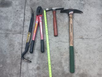 Craftsman Brick Hammer, 18" H.K Bolt Cutter, 36"Handy Mattock Pick Groundbreakers, Gorilla Bar 24" Heavy Duty $105Artesia, CA