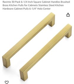 Ravinte 30 Pack 6-1/4 Inch Square Cabinet Handles Brushed Brass Kitchen Pulls for Cabinets Stainless Steel Kitchen Hardware Cabinet Pulls 6-1/4" Hole $35Chicago, IL