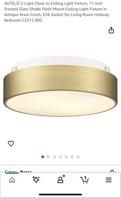 AUTELO 2-Light Close to Ceiling Light Fixture, 11 inch Frosted Glass Shade Flush Mount Ceiling Light Fixture in Antique Brass Finish, E26 Socket for L$35Chicago, IL