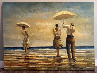 Large Oil Painting – “Beach Walkers with Umbrellas” – Signed Berman (in Vettriano Style)$500San Diego, CA