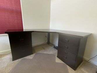 Pottery Barn Bedford Corner Desk - Dark Brown. Total of 3 filing cabinets and 2 drawers.$850Wilsonville, OR