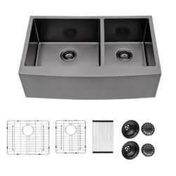 Lordear 60/40 Double Bowl Kitchen Sink Farmhouse Apron Front 36-in x 21-in Gunmetal Black Stainless Steel Double Offset Bowl Kitchen Sink$350Plano, TX